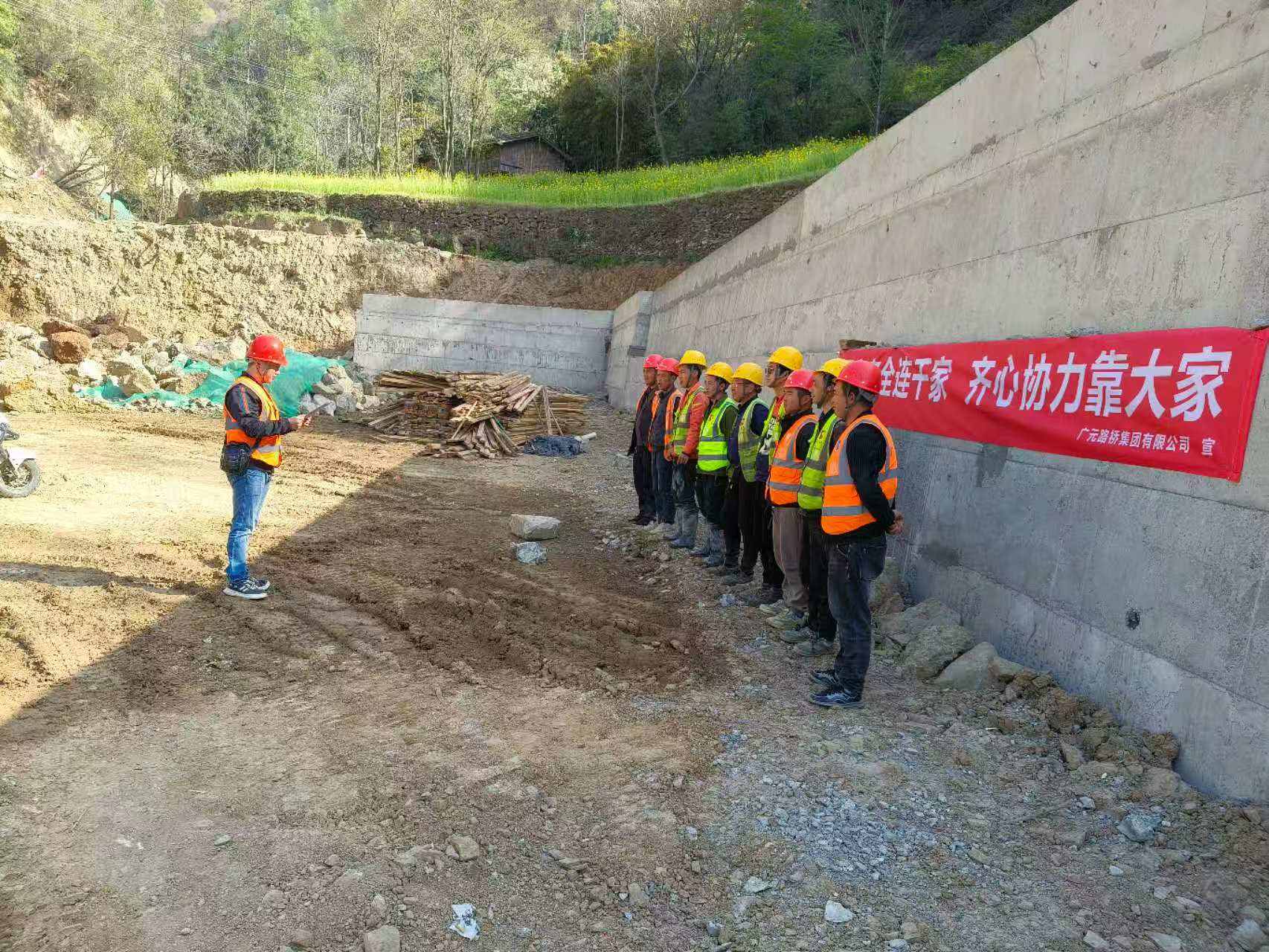 劍閣縣下寺至利州區(qū)月壩公路項(xiàng)目(三個(gè)石至硝洞埡)道路改建工程項(xiàng)目進(jìn)行橫幅宣傳